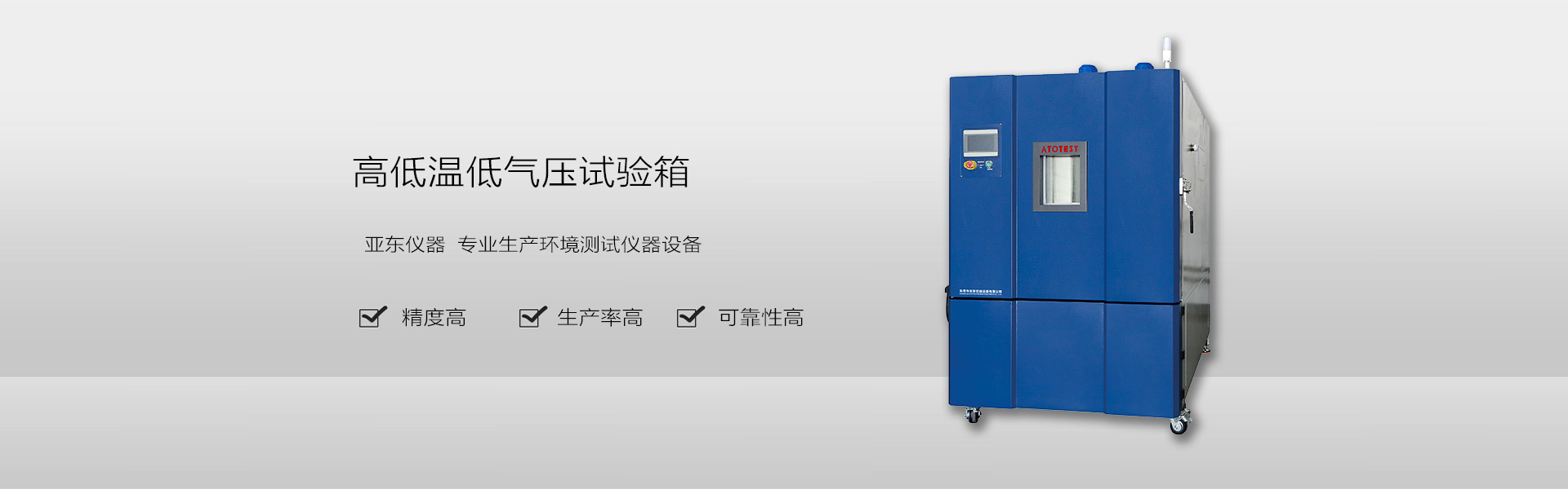 深耕于環(huán)境測試領(lǐng)域,主要生產(chǎn)恒溫恒濕箱、快速溫變箱、冷熱沖擊箱、老化試驗(yàn)箱、低氣壓試驗(yàn)箱等。